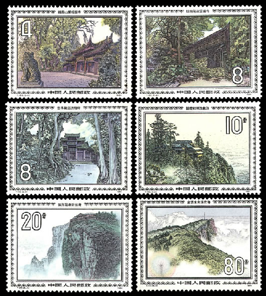 1984 T100 Scenes of Mount Emei Mount Emei (Chinese: 峨嵋山; pinyin: Éméi Shān is a mountain in Sichuan province, China. Mount Emei is one of the Four Sacred Buddhist Mountains of China, and is traditionally regarded as the place of enlightenment, of the bodhisattva Samantabhadra. Samantabhadra is known in Mandarin as Pǔxián Púsà (普賢菩薩). This is the location of the first Buddhist temple built in China in the 1st century CE. The site has seventy-six Buddhist monasteries of the Ming and Qing period, most of them located near the mountain top. The monasteries demonstrate a flexible architectural style that adapts to the landscape. |