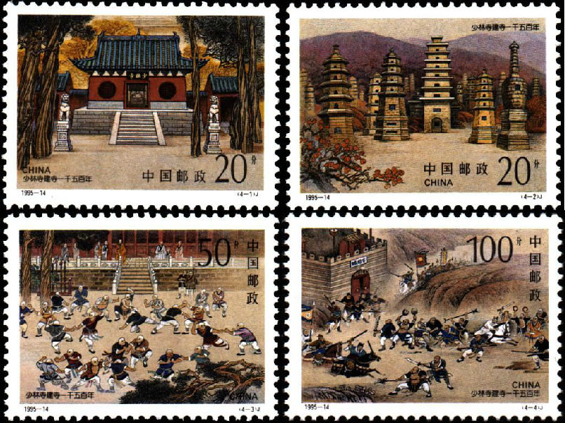 1995 1995-14 The 1500th Anniversary of the Shaolin Temple Shaolin Monastery or Shaolin Temple (Chinese: 少林寺; pinyin: Shàolín Sì is a Chán Buddhist temple on Mount Song, near Dengfeng, Zhengzhou, Henan province, China. It is led by Abbot Shi Yongxin. Founded in the fifth century, the monastery is long famous for its association with Chinese martial arts and particularly with Shaolin Kung Fu, and it is the best known Mahayana Buddhist monastery to the Western world. Shaolin Monastery and its famed Pagoda Forest were inscribed as a UNESCO World Heritage Site in 2010 as part of the "Historic Monuments of Dengfeng. |