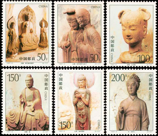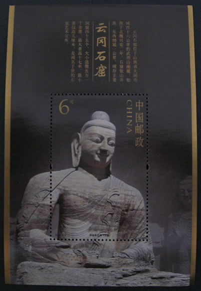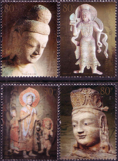 2006 2006-8 Yungang Grottoes The Yungang Grottoes (simplified Chinese: 云冈石窟; traditional Chinese: 雲崗石窟; pinyin: Yúngāng Shíkū; Wuzhoushan Grottoes in ancient time) are ancient Chinese Buddhist temple grottoes near the city of Datong in the province of Shanxi. They are excellent examples of rock-cut architecture and one of the three most famous ancient Buddhist sculptural sites of China. The others are Longmen (see 1993-13) and Mogao. |