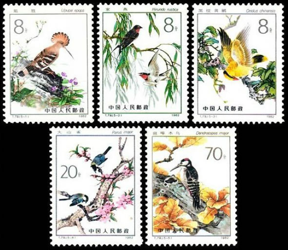 1982 T79, Beneficial Birds Eurasian Hoopoe, Upupa epops Seeing birds as "beneficial" is a new development. Still in 1958 Mao proclaimed the "4 pests" campaign ... One of the pests being sparrows which were believed to eat to much of the grain harvest. Sparrows (but actually ALL birds) were chased and hunted, and mostly exhausted by making noise (banging pots etc.) until they fell from the sky from exhaustion. Hundreds of millions of birds were killed. With no more natural enemies insects took over - and ate/ destroyed far more crops than birds could have done. Millions of people died. |