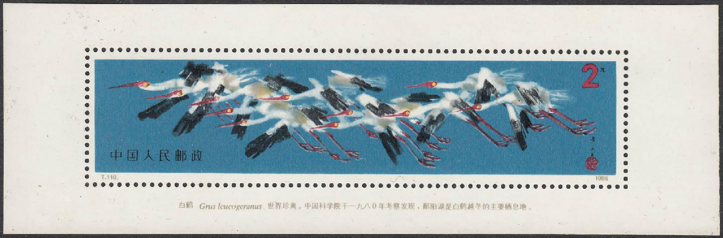 1986 T110, White Crane Grus leucogeranus ... The Siberian Crane (Leucogeranus leucogeranus), also known as the Siberian White Crane or the Snow Crane |