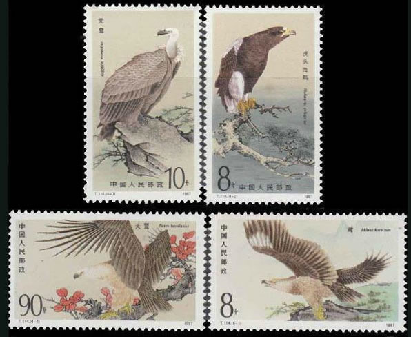 1987 T114, The Birds of Prey Black Kite (Milvus Korschun) Steller's Sea Eagle (Haliaeetus pelagicus) Cinereous Vulture (Aegypius monachus Upland Buzzard (Buteo hemilasius) |