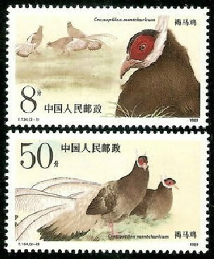 1989 T134, Brown Eared Pheasant, Crossoptilon mantchuricum |