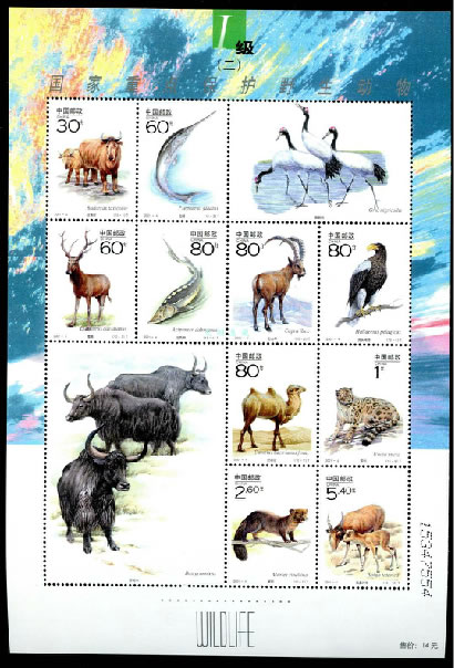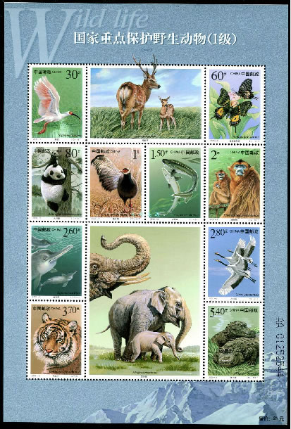 2000 2000-3, Key Wild Animals under First-Grade State Protection (I) Japanese Crested Ibis, or Crested Ibis, Nipponia nippon Brown-eared Pheasant, Crossoptilon mantchuricum Red-crowned Crane, Grus japonensis |